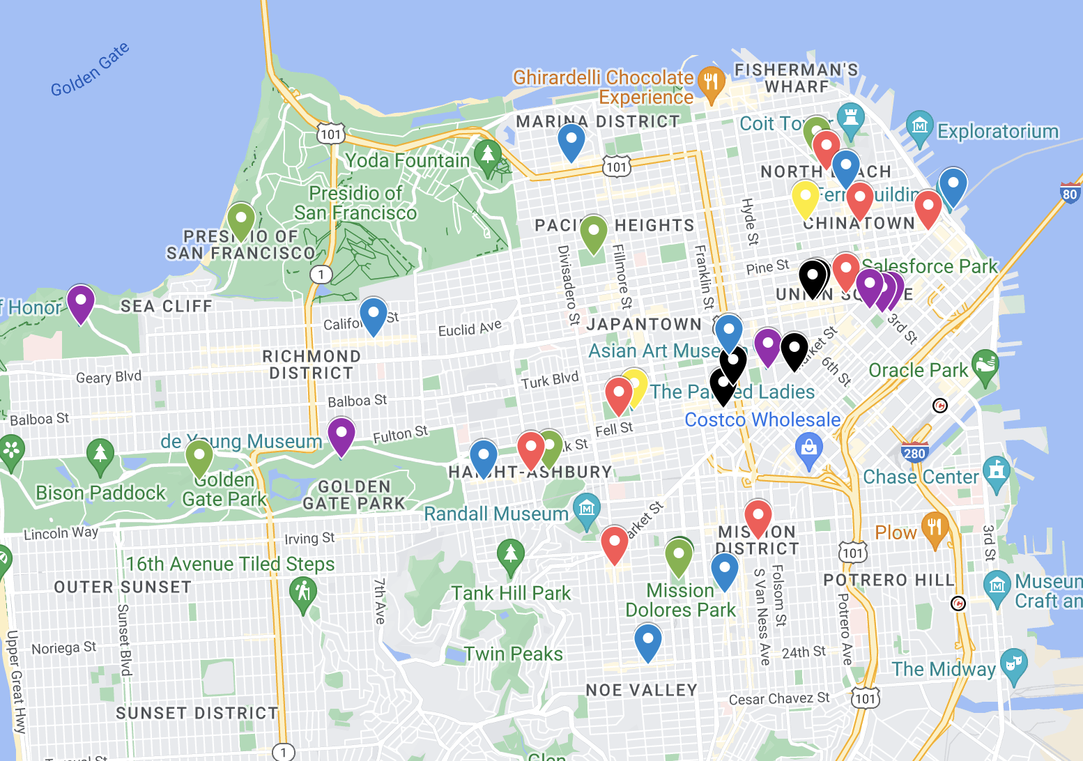 Tip: If you are looking for winding trails and pathways for venturing off the beaten path but still be a few blocks away from the lively Haight-Ashbury street, this park is for you!